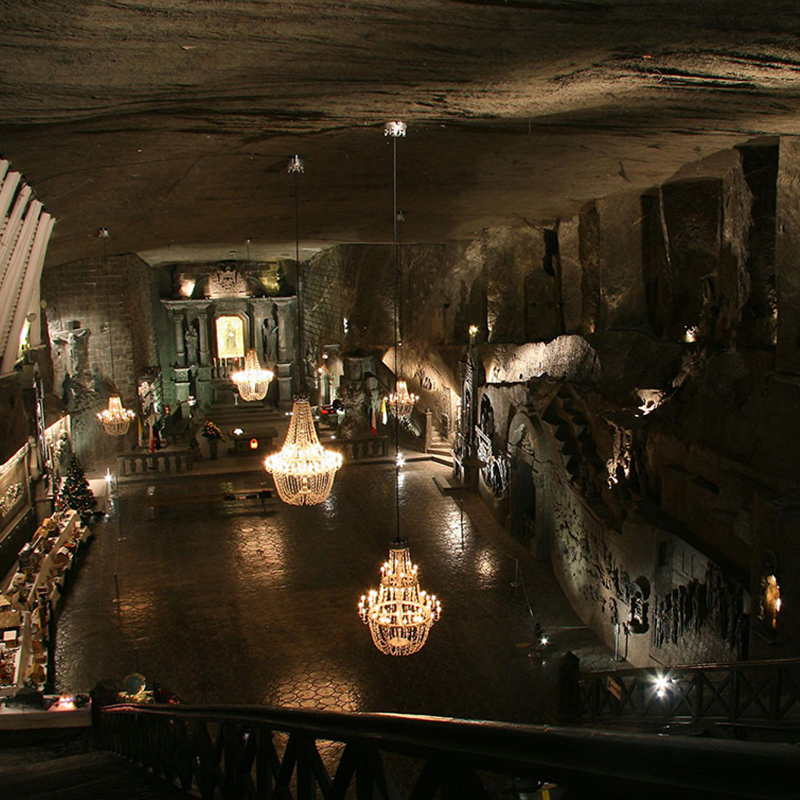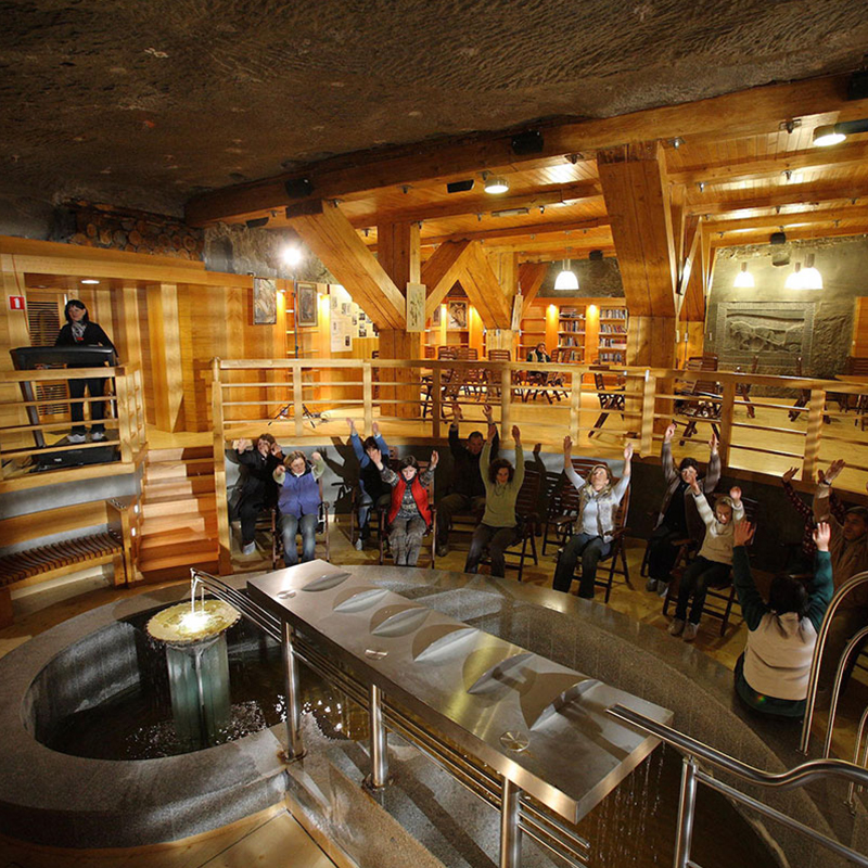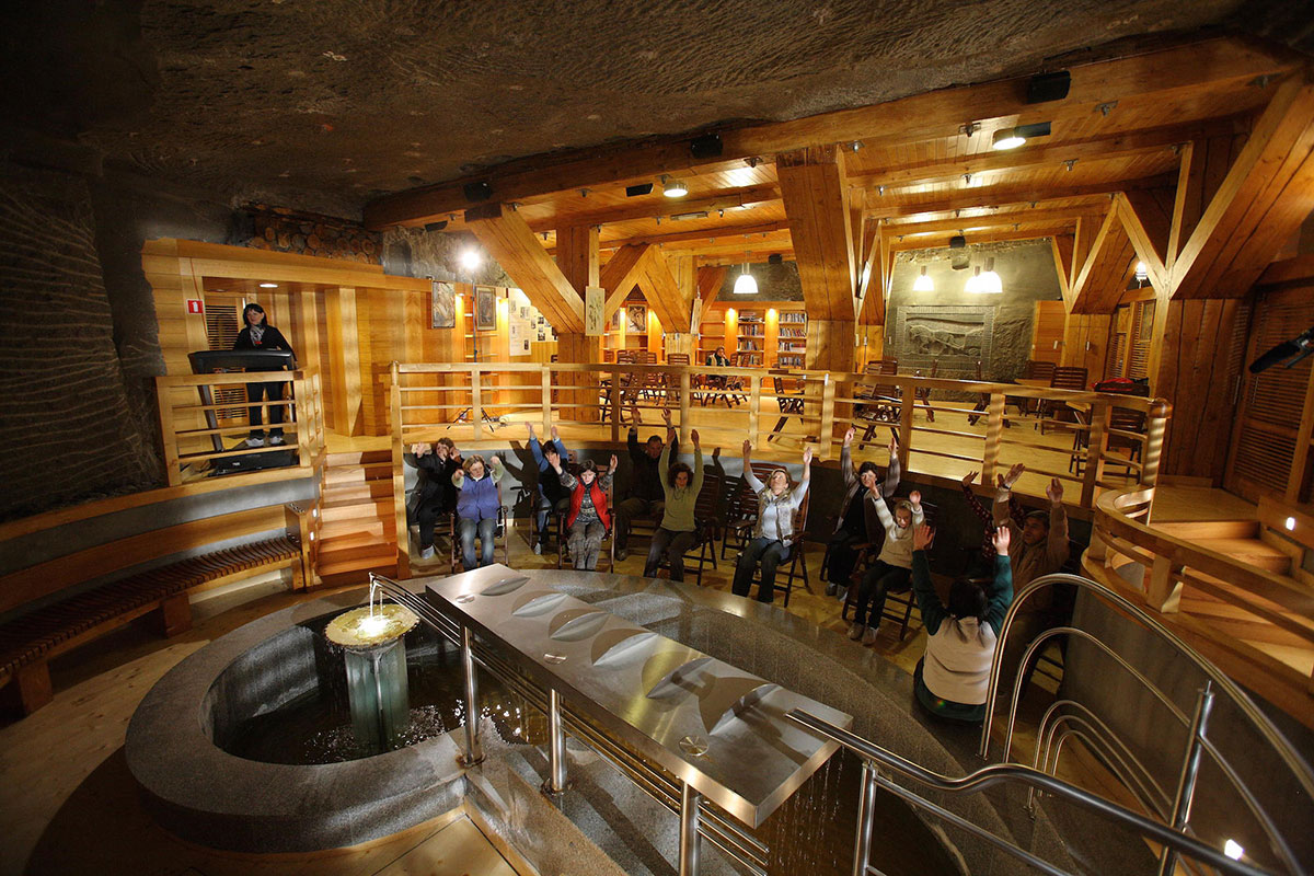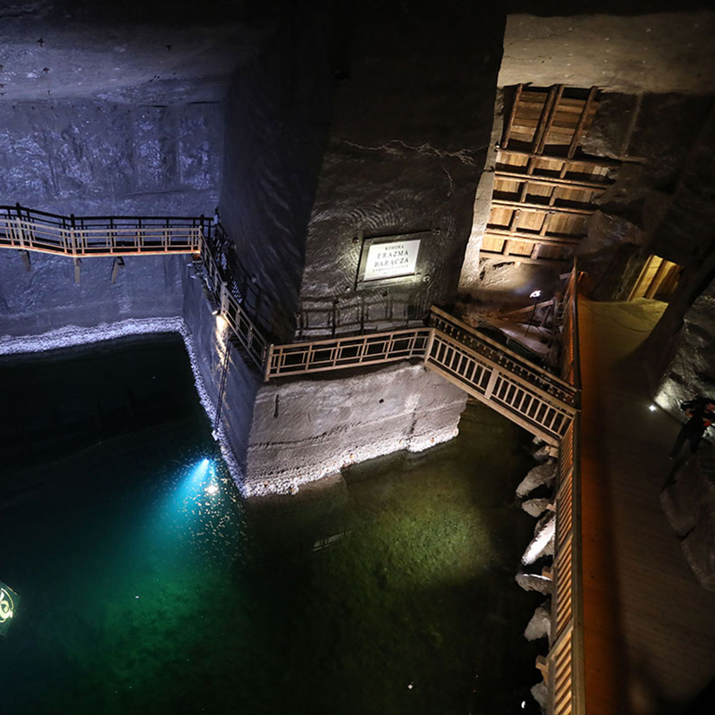 In striving to meet the visitors’ needs, the Mine and its environs constantly change: new themed routes have been set out underground, and the tourist route was made accessible also for the disabled. A number of workings has been repurposed with new functions – conferential, gastronomic, commercial. The Lill chamber now hosts state-of-the-art multimedia facilities (interactive applications, mapping, 5D cinema). Changes are also happening on the ground: the Regis shaft, with its extraordinary shaft top, was opened to tourists in 2012, following renovation. In the century-old brine baths of the St. Kinga’s park, a Grand Sal Hotel was opened, and from 2016 visitors and the spa clients can access a graduation tower – the largest in southern Poland.