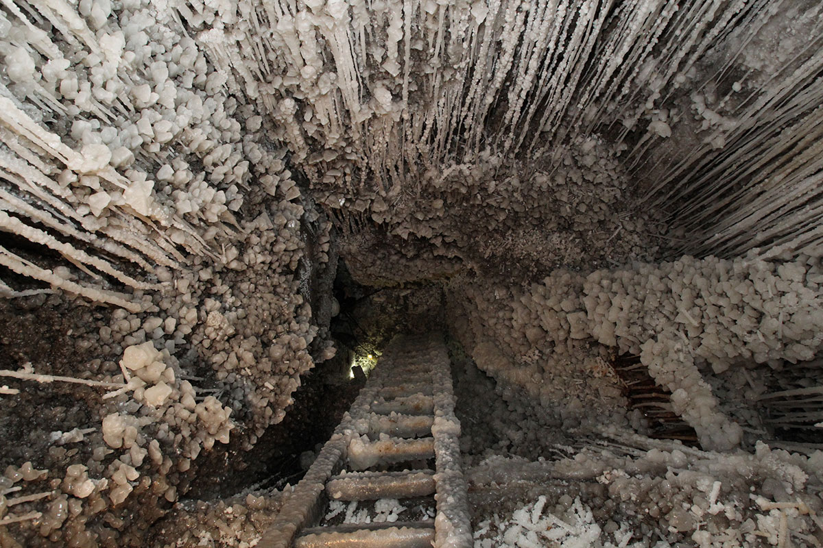 At the beginning, the geological display presents, in an accessible manner, how the salt bed was created at the foot of the Carpathian Mountains. The guests will have a chance to see beautiful examples of salt crystals, including the massive halite monocrystals from the Crystal Grottoes in Wieliczka, unique on the world scale, and salt in varieties and forms which they have probably not seen before on the surface: salt hair, salt trees, stalactites, stalagmites and columns, as well as old tools secondarily covered by beautiful salt crystals.