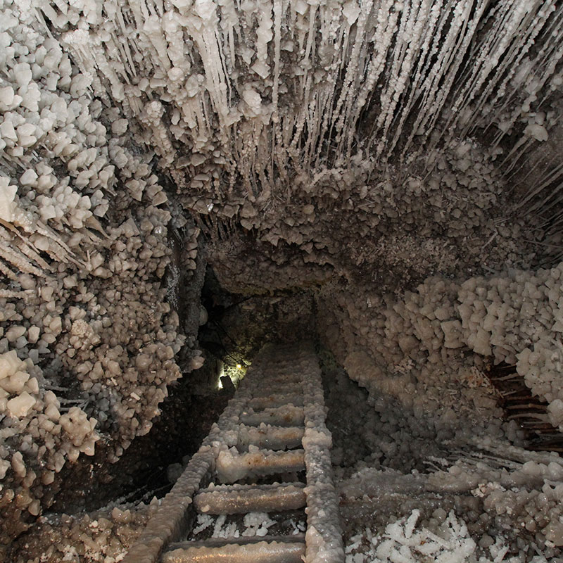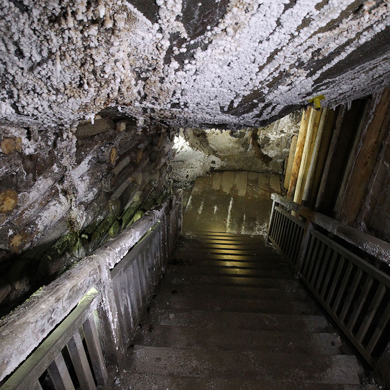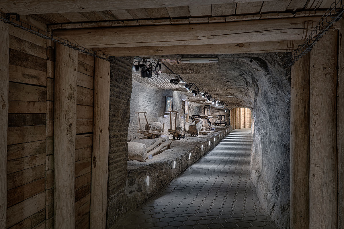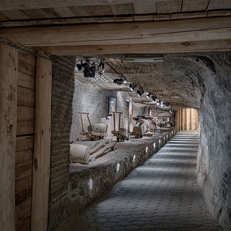 In the underground museum, you can also admire vast, majestic the Maria Teresa II and the Saurau chambers, exploited in the 19th and 20th c. They have been acknowledged as mining reserves, as they clearly present the historical methods of working the salt bed. Saurau is the largest working in the mine – as much as 16,000 cubic metres of extracted salt.