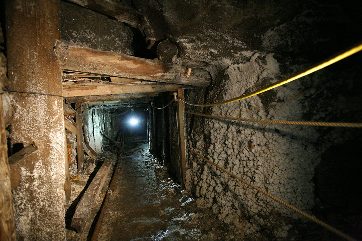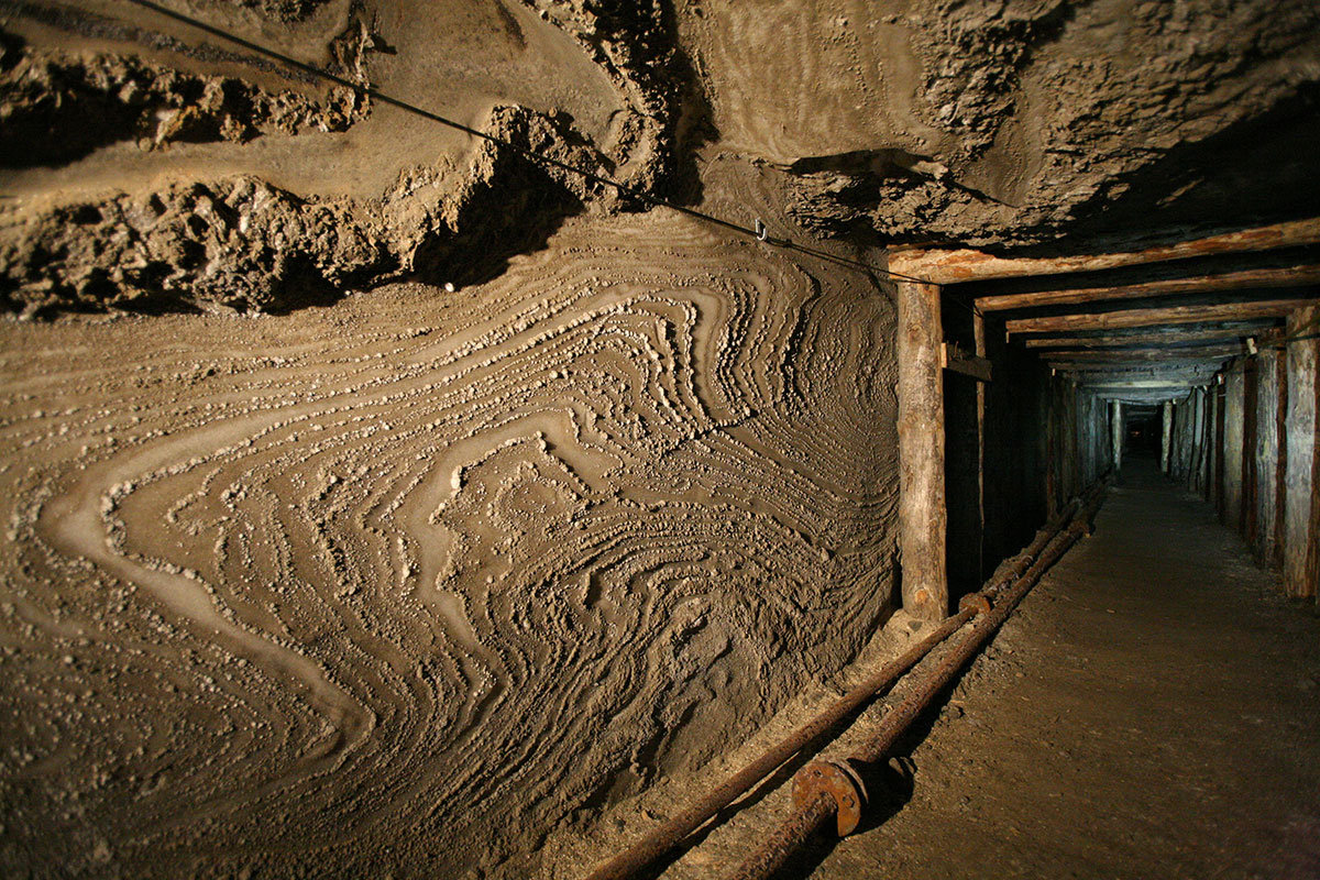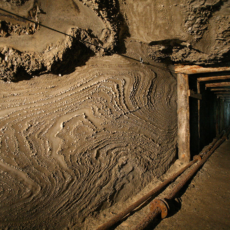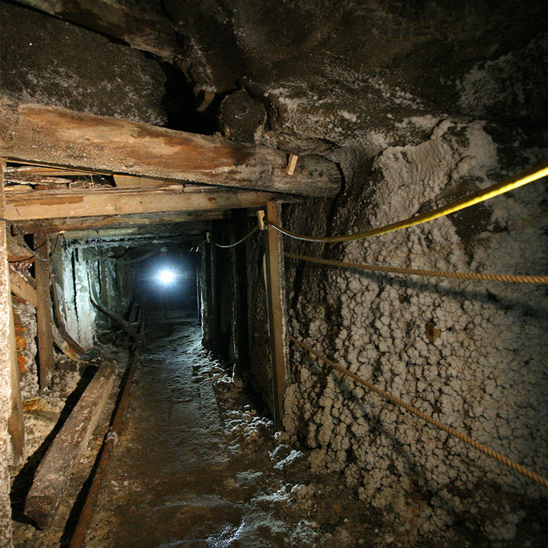 Further on, the tour will provide visitors with information on mine shafts, water and cave-in hazards, prevention against these hazards, securing workings or waterproofing them. An important topic will be the geological structure and tectonics of the deposit, and the different types of primary and secondary salts that make up the deposit will be shown.